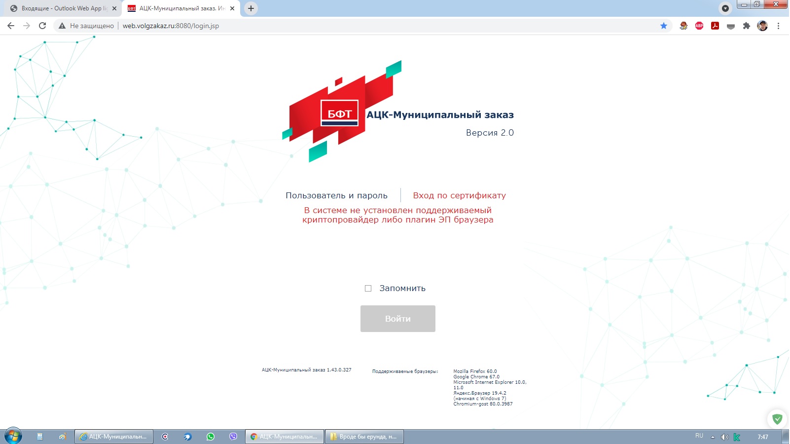 Попробуйте переустановку Сервис ЭП АЦК v 1.0.3.9 для WEB-клиента (http://www.volgzakaz.ru/static/File/doc/volgograd/AZK/v%201.0.3.9/setup.exe), а также установите плагины для КриптоПро (cadesplugin),