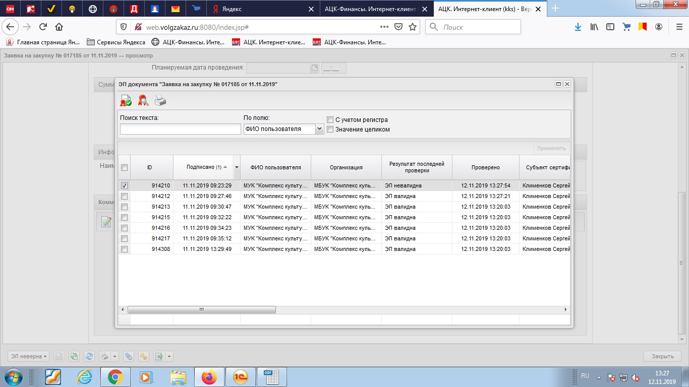 При подписании заявки на закупку произошла ошибка эп невалидна.