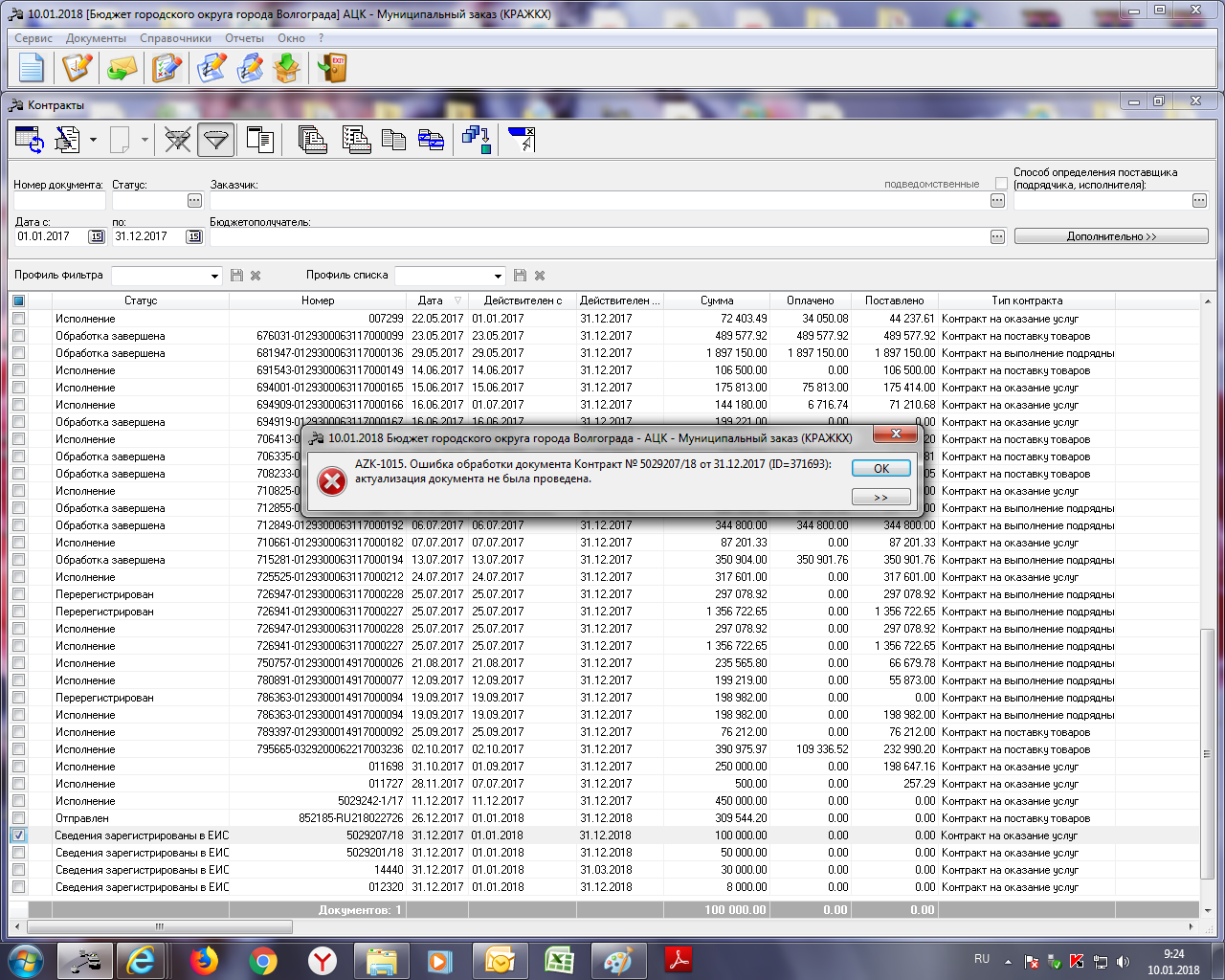 Действия над контрактами будут доступны после проведения актуализации данных 14.01.2018