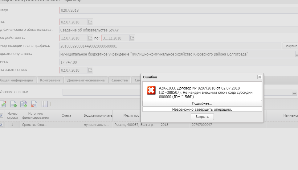 Не найден внешний ключ кода субсидии 000000 (ID= "1566")