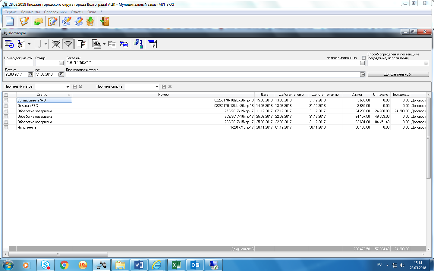 А в департаменте финансов пользователь АЦК-"Муниципальный заказ" перед поиском вашего договора очищал фильтры?