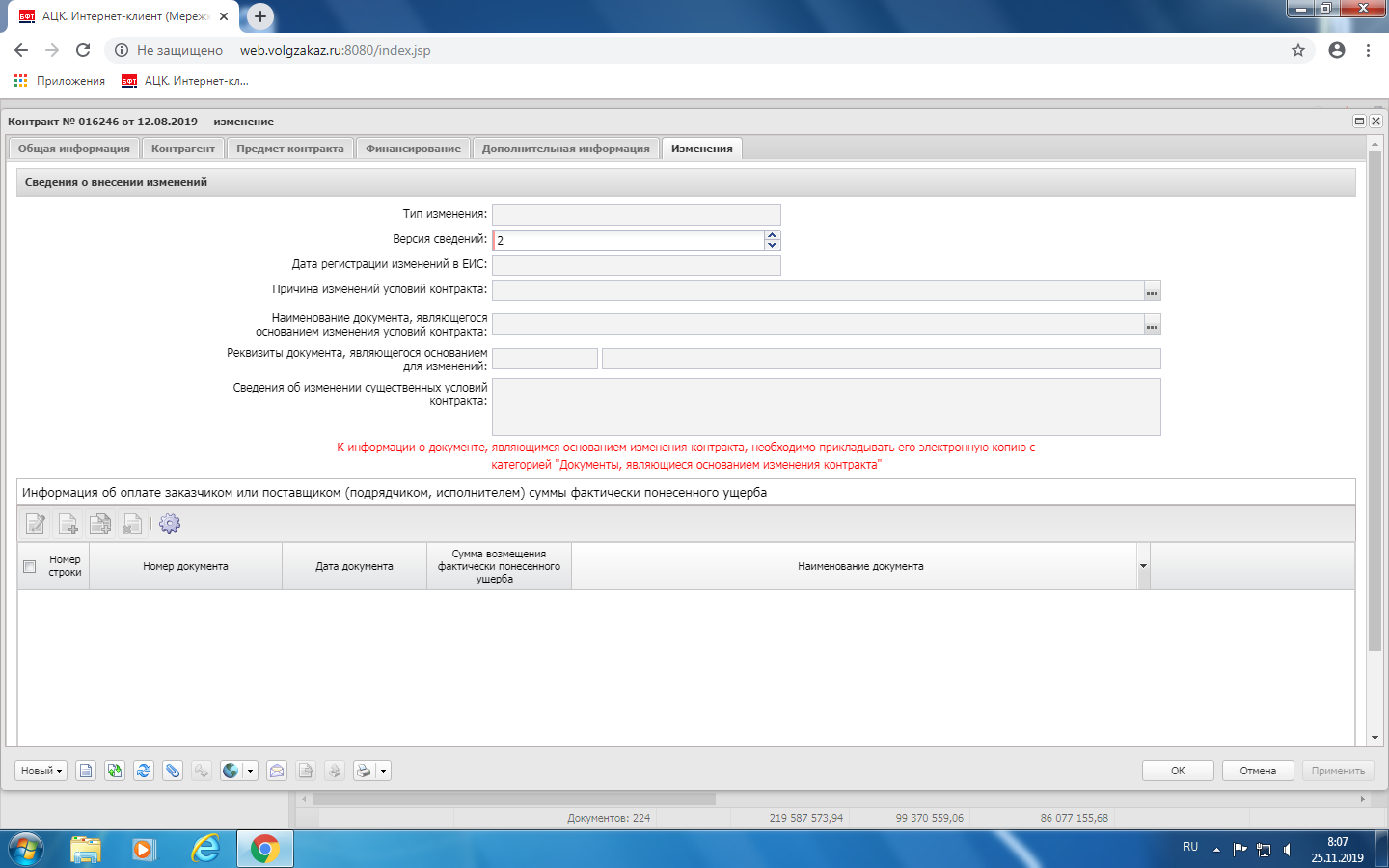 Обращение №125112019 допсоглашение, вкладка "Изменение"