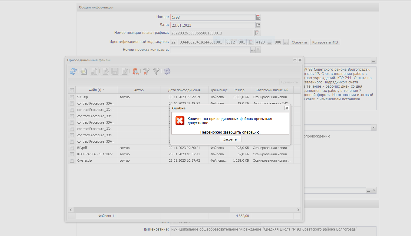 Удалите самые "старые" файлы с категорией вложения Импортировано из ЕИС.
