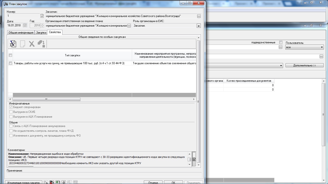 При выборе в составе ИКЗ 0000 с целью обработки документа при ошибке "В идентификационном коде закупки указан код группы ОКПД "1920", все строки спецификации должны содержать одинаковые коды КТРУ и коды ОКПД из одной группы." возникает проблема с выгрузкой в ЕИС. "Первые четыре разряда кода позиции КТРУ не совпадают с 30-33 разрядами идентификационного кода закупки" Решение предложенное в обращении от 10.01.2018 №210012018 не помогает.