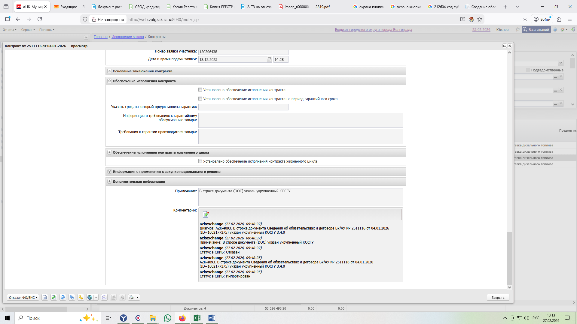 Диагноз: AZK-4093. В строке документа Сведения об обязательствах и договоре БУ/АУ № 2511116 от 04.01.2026 (ID=1002177375) указан укрупненный КОСГУ 3.4.0