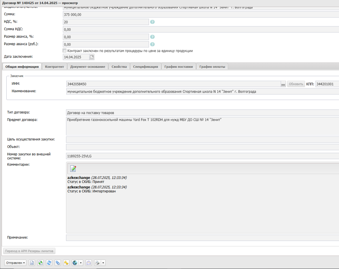 Просим Вас поменять статус ЭД "Договор" № 140425 от 14.04.2025 г. на статус "Исполнение". Ошибок импорта нет.