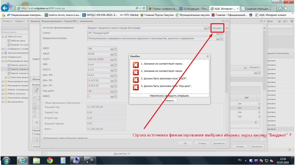 Строка источник финансирования полностью выбрана именно через кнопку "Бюджет"? Т.е. именно так как и раньше в win-клиенте, старую строку удалили, и создали новую строку с новым КБК?
